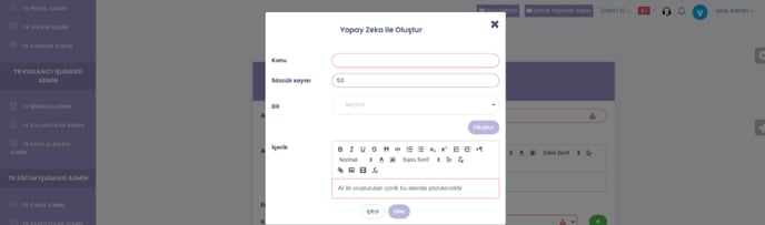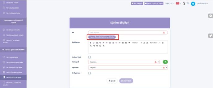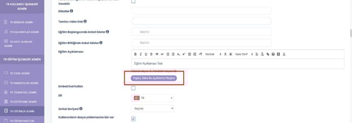 eğitim açıklaması oluştur ayarı eklendi.