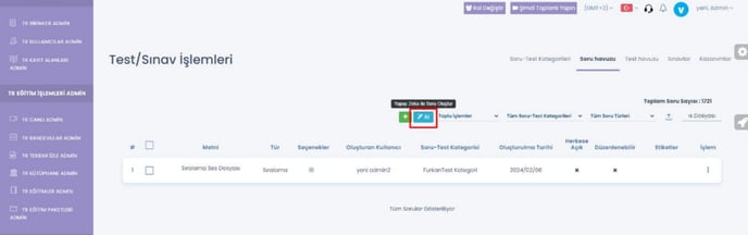 6- Soru havuzu sayfasında yapay zeka ile soru oluştur ayarı buton olarak eklendi.