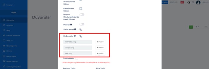 9- Duyurular – Ek dosyalar kısmına birden fazla dosya ekleme özelliği getirildi.