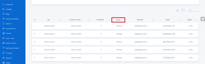 10- Loglar – Günlük giriş istatistikleri tabına birim sütunu eklendi.