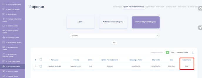 11- Admin – Raporlar – Eğitim Paketi Dönemi Bazlı – Atama-Bitiş Tarihi raporuna