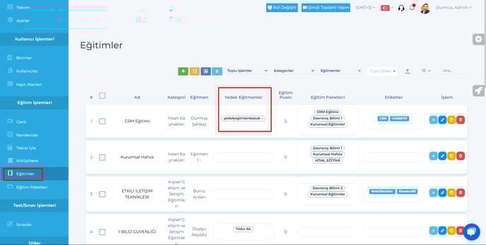 14- Admin – Eğitimler sayfasına, Yedek eğitmenler sütunu eklendi.