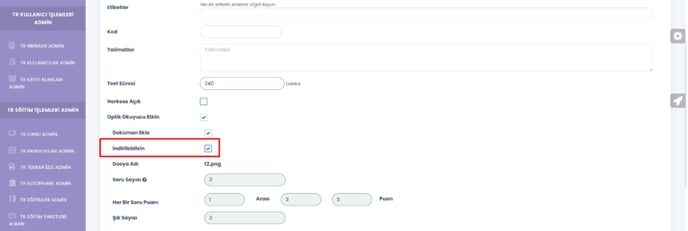 Test havuzu sayfasında indirilebilsin ayarı açıksa indir butonu görülebilir.