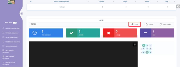 eklendi. Optik sınavlarda doküman indirilebilecek.