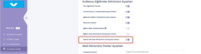 20- Admin – Ayarlar – Görünüm ayarları sayfasına, Tekrar izle liste görünümü