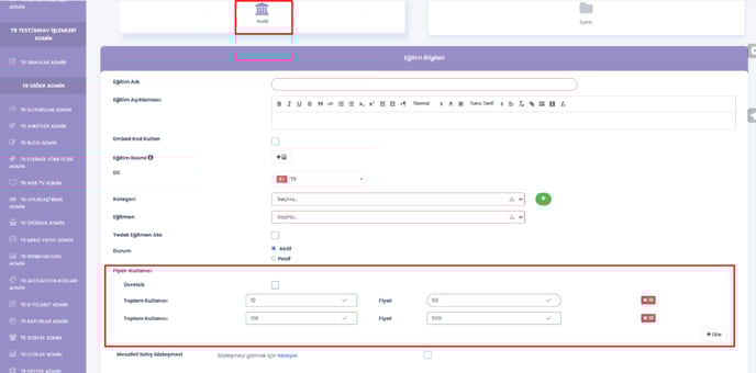 Profil alanından gerekli bilgileri dolduralım. Eğitimin ücretsiz veya fiyat-kullanıcı