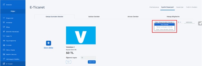 Eğitim, artık diğer sistemlerde görünür hale gelmiştir. Diğer sisteme geçerek, satışa sunulan eğitimi inceleyebiliriz. Görseldeki alanda, satışa sunduğumuz eğitimlerin yanı sıra diğer sistemlerin satışa çıkardığı eğitimleri de görüntüleme imkanına sahibiz.