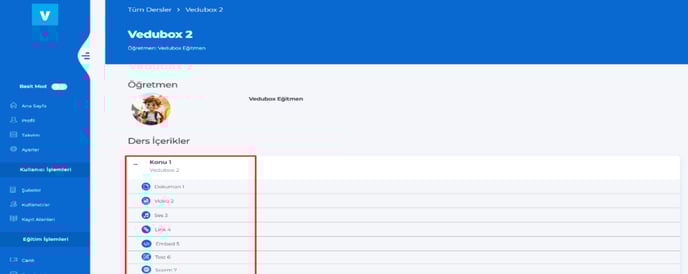 Gör butonuna tıklayarak o eğitim içerisindeki konu ve içerikler görülebilecek.