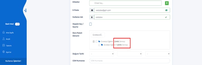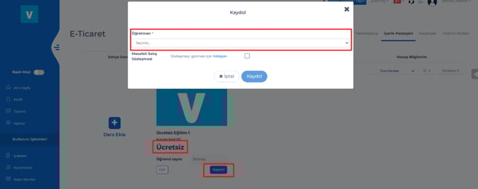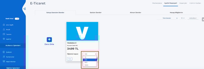 Ücretsiz bir eğitim satıldığında ise sınırsız kullanıcı kaydı yapılabilecek.