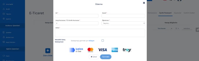 Ödeme aşamasında gerekli bilgiler ve eğitmen seçilerek devam edilecek.