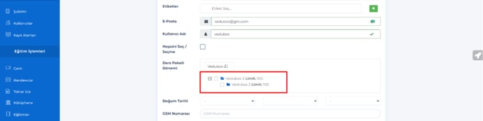 Kullanıcıya atanacak olan bu eğitimler ve limit sayısı şekildeki gibi görünecek.