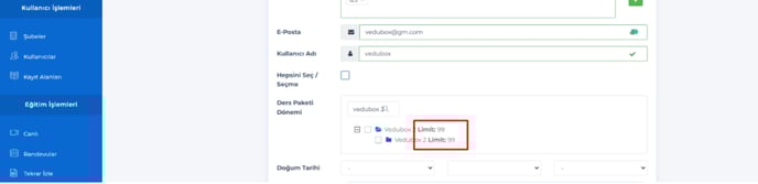 Kullanıcı üzerine eğitim tanımlanıp, tekrar düşürüldüğünde limit değeri azalacak.