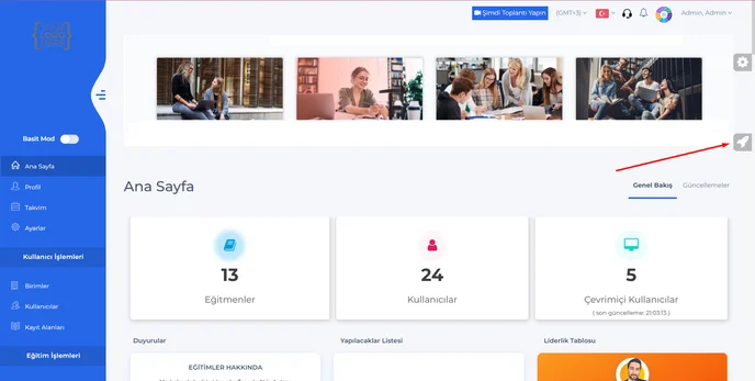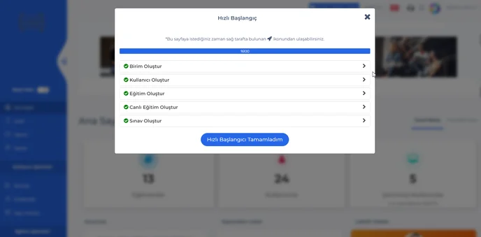 1- Admin & Eğitmen - Ana sayfa - Sağ bölüme Hızlı Başlangıç simgesi eklendi.