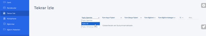 4- Eğitmen – Tekrar izle – Toplu sil butonu, Toplu işlemler menüsü altına alındı.