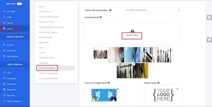 7- Admin – Ayarlar – Görünüm ayarları sayfasında, Ana sayfa resim alanına en çok