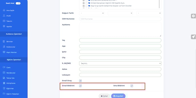 Bu alan kullanıcı profil sayfasında bulunan email ve sms bildirim ayarlarıyla bağlantılı.