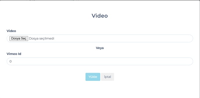 Açılan alandan ister dosya ister id ekleyerek video eklenebilir.