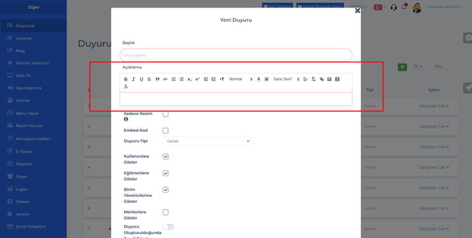 13 - Duyurular sayfasında açıklama bölümüne eklenen veri sınırı 20mb’a yükseltildi.