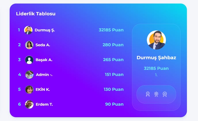 14- Liderlik puan tablosunda soyadın ilk harfi görünecek şekilde düzenleme