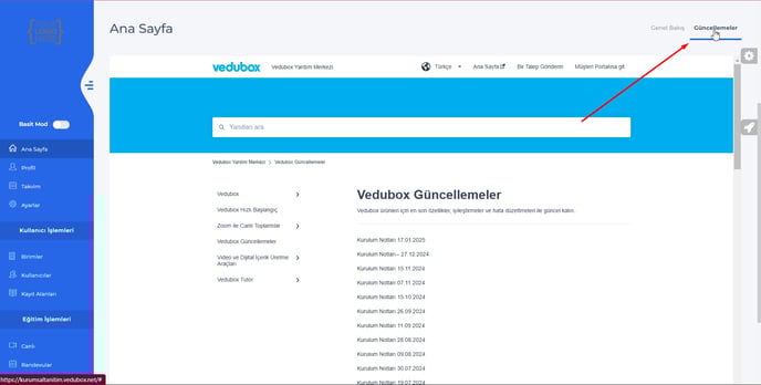 16- Ana sayfa – Genel bakış butonu sağına güncellemeler tabı eklendi.