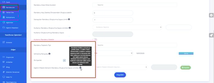 18- Randevular – Eğitim paketi dönemi ayarına İnfo eklendi.