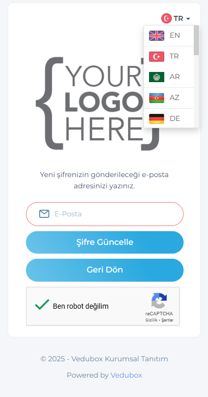 19- Şifre sıfırlama sayfasına dil seçimi alanı eklendi.