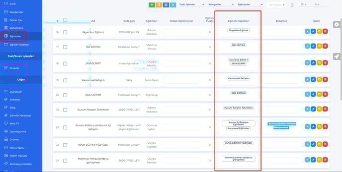 20 - Eğitimler sayfasında bulunan eğitim paketleri sütun görünümü değiştirildi.