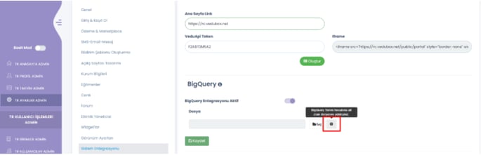 Ayarlar - Sistem Entegrasyonu – BigQuery alanında bulunan butona tıklayarak console