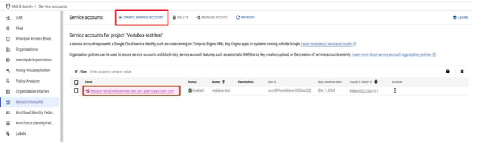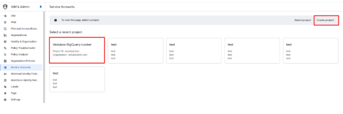 Proje seçiminden sonra, servis hesabı varsa seçelim yoksa oluşturalım.
