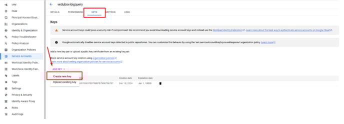 Servis hesabı seçildikten sonra, Keys tabına gelelim. Burada bir anahtar oluşturalım.