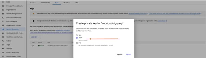 Oluşturulacak keyi JSON şeklinde indirelim.