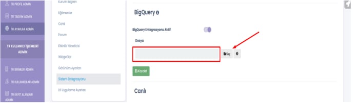 Ardından indirilen dosyayı Sistem entegrasyonu – BigQuery alanına ekleyelim ve