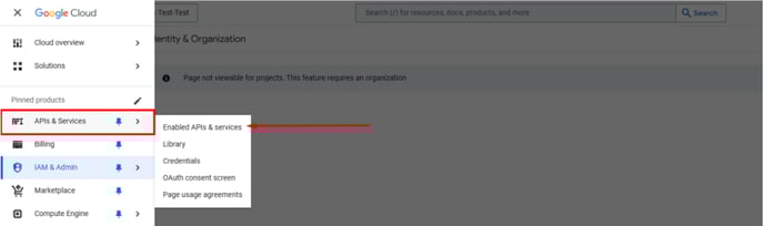 Burada APIs & Services alanında, Enabled APIs & services alanına tıklayalım.