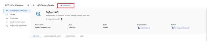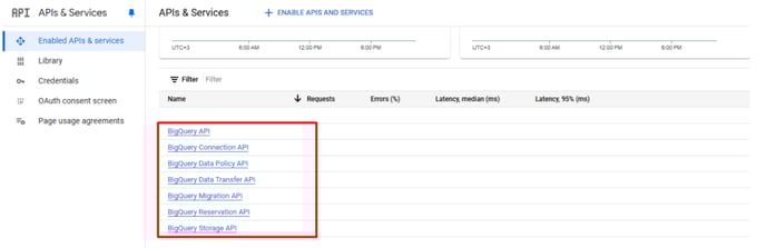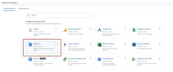Açılan sayfada bu bölümler hali hazırda aktif geliyor fakat, kontrol amaçlı BigQuery