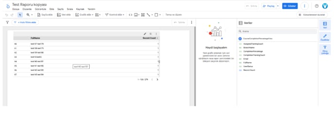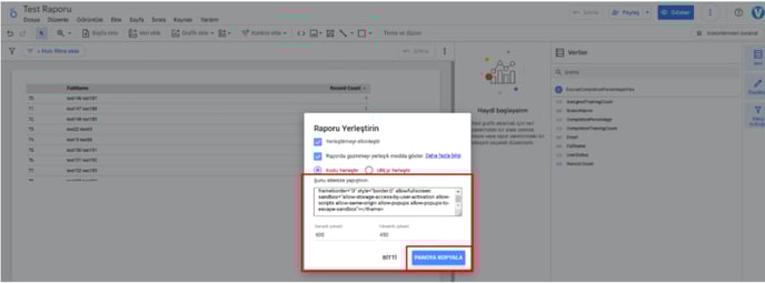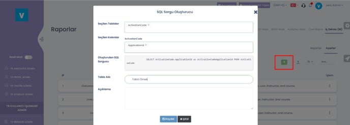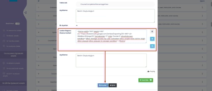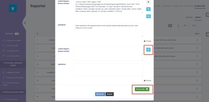 Ardından raporumuzda düzenle tarafına gidip bu kodu yeni ekle diyerek veya mevcut