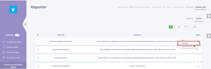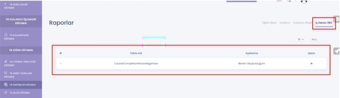 Paylaşımdan sonra eğitmen ve birim yöneticisi bu raporları raporlar sayfasında