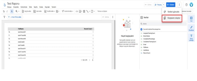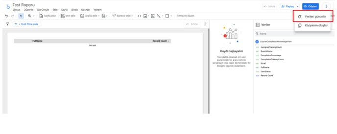 Ardından looker studio tarafında üç nokta – verileri güncelle diyerek sistemdeki