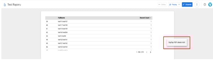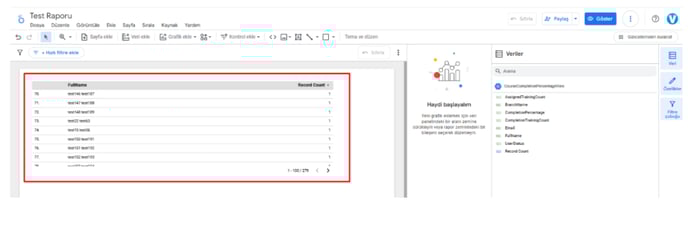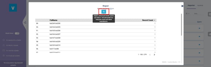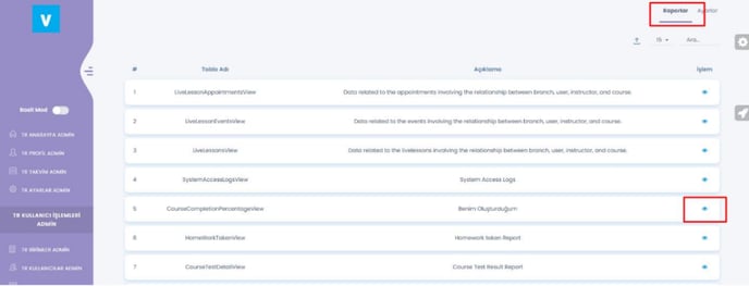 Oluşturduğumuz raporu, Raporlar sayfasında göz simgesine tıklayarak görebiliriz.