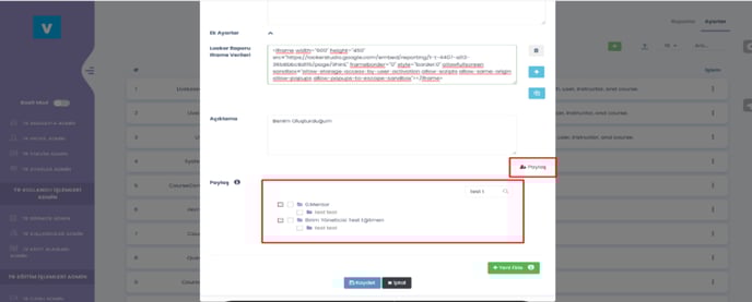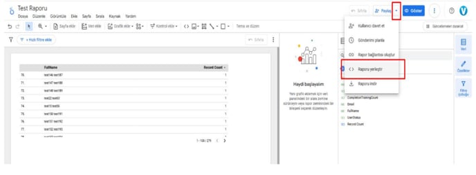 Oluşturduğumuz raporu sisteme yansıtmak için paylaş butonu yanında bulunan