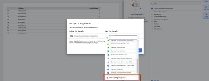 Açılan sayfada veri kaynağı oluştur diyelim.