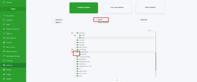 - Admin – Raporlar – Özel rapor – Birim sekmesinde birden fazla birim seçme geliştirmesi yapıldı.