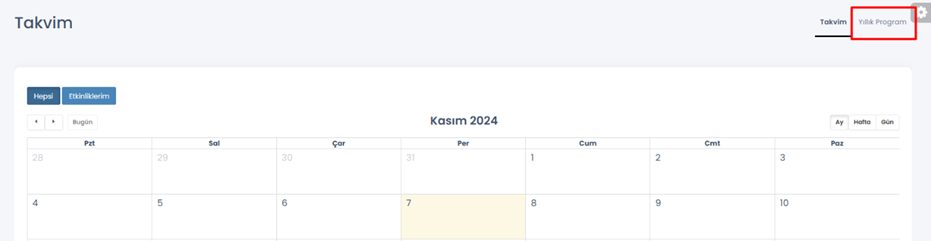 - Takvim – Yıllık Program tabı sistemden kaldırıldı.