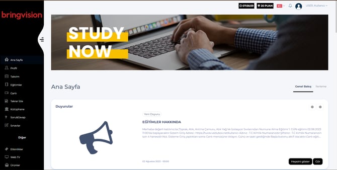 5- Admin & Eğitmen & Birim Yöneticisi – Eğitimler - Profil sayfasına,