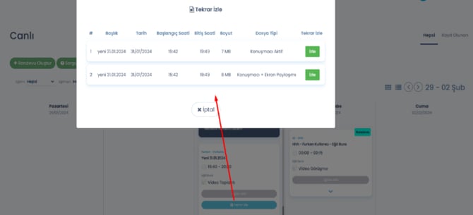 4- Kullanıcı – Canlı sayfası, tekrar izleye tıklandığında pop-up açılması sağlandı.