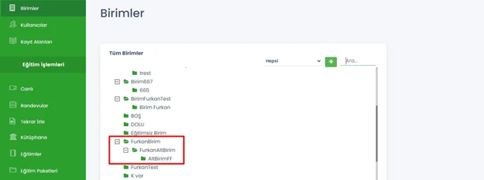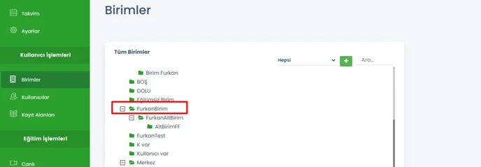 Tüm birimler ayarı seçildiğinde, sistem içerisinde bulunan kullanıcılar tüm birimler içerisinde değerlendirilecek.