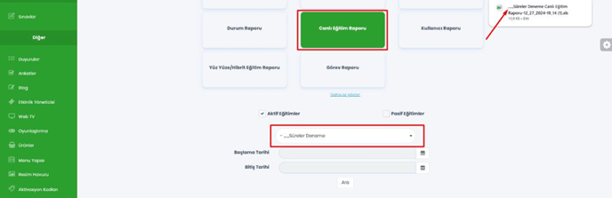 - Admin – Raporlar – Eğitim Bazlı – Canlı Eğitim Raporunda excel dosyasının Eğitim ismi ile indirilmesi sağlandı.