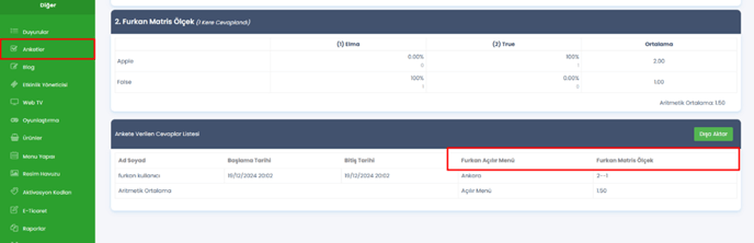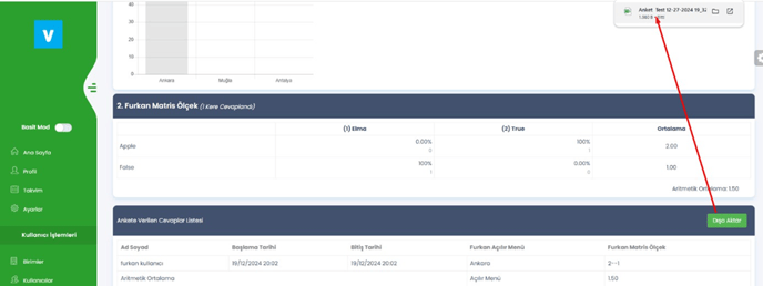 Excel dosyasının anket ismine göre indirilmesi sağlandı.