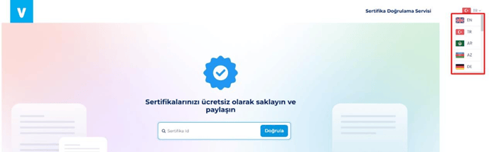 - Sertifika doğrulama sayfasında dillere bayrak eklemesi yapıldı.