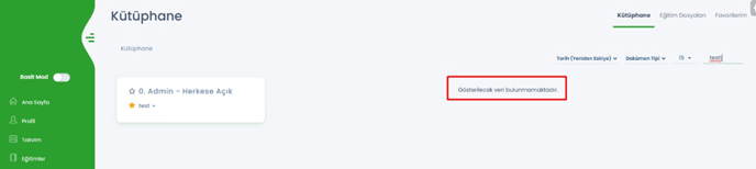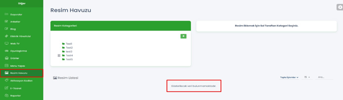 - Admin & Eğitmen – Resim Havuzu sayfasına veri yoksa veri yok mesajı