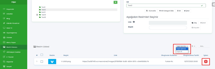 Toplu sil, toplu işlemler menüsü altına alındı. Sil ikonu eklendi.